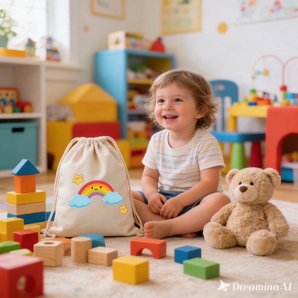 Tas serut berbahan kanvas dengan desain ilustrasi pelangi dan bintang yang lucu dan berwarna cerah, sehingga terlihat ceria dan cocok untuk anak-anak.